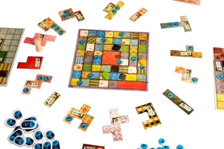 Grą przesłodką, po którą warto sięgnąć, ponieważ sprawia, że chcesz się przykryć kocykiem i wypić gorące kakao jest Patchwork. Gra, w której szyjemy kołderkę. Ok, nie budujemy tutaj naszego małego świata – ale przed nami i tak zadanie ambitne – kto nie chciałby uszyć spersonalizowanej kołderki z kolorowych kawałków materiału? Tutaj mamy taką możliwość – razem z drugim graczem (tak tak, jest to gra przeznaczona dla dwóch graczy, więc jeśli poszukujecie produkcji, w którą będziecie mogli zagrać np. ze swoją drugą połówką sięgnijcie po Patchworka) ścigamy się i szyjemy kołderkę (czyli układamy kolorowe kafelki), tak aby nie miała dziur – ma być piękna, kolorowa i w domyśle cieplutka. Do tego naszą walutą, dzięki której możemy zakupić kolejne części kołderki są guziczki. Im więcej guziczków na kołderce tym lepiej, możemy dzięki temu dokupić większe i bardziej interesujące w swych kształtach fragmenty materiału, tym samym nasza kołderka nabiera kolorów i przybliża nas do zwycięstwa. Jeżeli na naszej predefiniowanej planszy mamy mniej niezapełnionych pól niż przeciwnik, wygrywamy i możemy cieszyć się piękną i cieplutką kołderką 😊