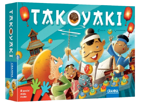 Mieliśmy sushi, czas na Takoyaki! Jest to gra zręcznościowa przeznaczona dla 2-4 osób, w której to trafiamy na festiwal jedzenia w Osace! Ulice są tu pełne turystów i przechodniów spragnionych lokalnych przekąsek, zwłaszcza kuleczek Takoyaki. Musimy udowodnić, że to my jesteśmy królami festiwalu i godni tytułu mistrza Takoyaki! Każdy gracz przygotowuje swój grill oraz kuleczki  z trzema rodzajami sosów. Za pomocą uroczych pałeczek z kolorowymi łapkami kucharze równocześnie muszą zrealizować zamówienie, czyli ułożyć kuleczki zgodnie ze wzorem przedstawionym na jednej z 40 kart.