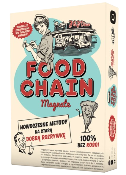 Jest to strategiczna gra ekonomiczna, w której to przeniesiemy się do Ameryki lat ‘60, gdzie knajpy sprzedające hamburgery zdobywały kolejne rzesze klientów. Jako prezesi największych restauracji będziemy sprzedawać jedzenie, prowadzić kampanie marketingowe i rywalizować między sobą w dotarciu do największej liczby osób. Food Chain Magnate jest grą dla doświadczonych graczy, wymagającą sprawnego zarządzania zespołem pracowników, przewidywania potrzeb klientów i posunięć konkurencji. Gra posiada przyjemną warstwę graficzną, przywodzącą na myśl styl epoki, oraz ogromną liczbę komponentów, w tym ponad 300 kart i 200 drewnianych znaczników.