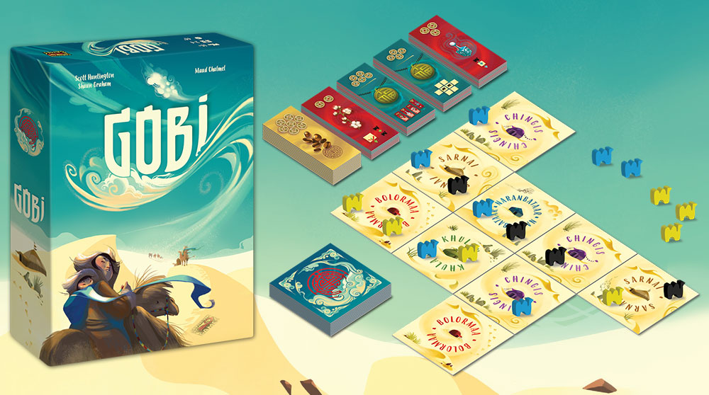 Potężna burza piaskowa rozdzieliła koczownicze plemiona pustyni Gobi! Jako poganiacze karawan, naszym zadaniem jest teraz pomóc nomadom w ponownym połączeniu się. Jest to ciekawa gra, która polega na układaniu kafelków i budowaniu tras. Po kolei układamy kafelki, a następnie ustawiają wielbłądy na sąsiednich kafelkach. Każdy kafelek zawiera nazwę plemienia. Gdy szlak wielbłądów połączy dwa kafelki o tej samej nazwie, gracz wybiera dar, zdobywając punkty zwycięstwa i moc do wykorzystania w dalszej części gry. Trasa pięciu lub więcej wielbłądów daje dostęp do kawy, specjalnego daru. Gra kończy się, gdy wszystkie kafelki zostaną ułożone.