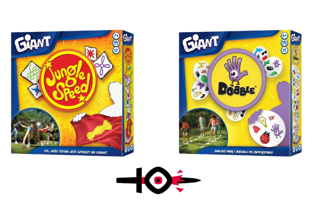 Nie bez powodu wspominaliśmy o tym, że z niektórych gier będzie można korzystać na świeżym powietrzu, albowiem pod koniec kwietnia ukaże się specjalna edycja Jungle Speed i Dobble. Wersja Giant to popularne gry w zdecydowanie większym rozmiarze. Zasady są tu podobne, choć wprowadzono oczywiście dodatkowe tryby. W Dobble Giant mamy 4 rodzaje zabawy: Sztafeta, Wilki i Gąski, Wyścig po kole oraz Tajemnicze numery. W Jungle Speed dostępnych jest 28 dużych kart, gdzie mamy 2 drużyny, a jedna osoba gra jako totem. Każda drużyna wygrywa albo przegrywa jako całość. Jeśli drużyna pozbędzie się wszystkich swoich kart, wygrywa. Pozostałe drużyny i totem przegrywają. Totem z kolei wygrywa, gdy rozmieści wszystkie swoje żetony na bazach drużyn.
