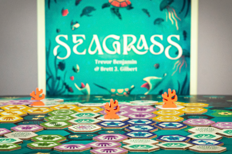 W Seagrass z kolei wcielić się można w morskich przyrodników, eksplorując liczne rafy i kolonie stworzeń, które rozwijają się wśród tych rozrastających się i zróżnicowanych „lasów deszczowych morza”. Jest to gra strategiczna o zaskakującej głębi i wielowarstwowej interakcji. W swojej turze po prostu musimy rozbudować kolonię stworzeń wodnych lub rafę. Nasze kolonie zdobywają więcej punktów, im są większe, i pomagają nam rywalizować o przewagę w pobliżu raf. Rozbudowa raf zwiększa ich wartość punktową i pomaga nam uzupełniać zapasy kafelków, ale rozbudowa rafy czyni ją również atrakcyjniejszym celem dla przeciwników!
