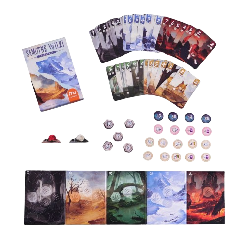 Samotne wilki to dwuosobowa gra pojedynkowa z mechanikami zbierania lew i kontroli obszarów. Wcielamy się tutaj w przywódcę watahy i staramy się osiągnąć zwycięstwo – zostać alfą krainy. Aby tego dokonać, wysyłamy wilki ze swojego stada, żeby walczyły o poszczególne terytoria. Zwycięzca lewy odwraca kartę przeciwnika na stronę samotnego wilka, umacniając swoją pozycję na danym terenie. Z kolei gracz, który przegrał lewę, zdobywa bliznę – doświadczenie, które pozwoli jego watasze rosnąć w siłę. W walce o pozycję alfy nie ma słabych kart – są wyłącznie słabi przywódcy!